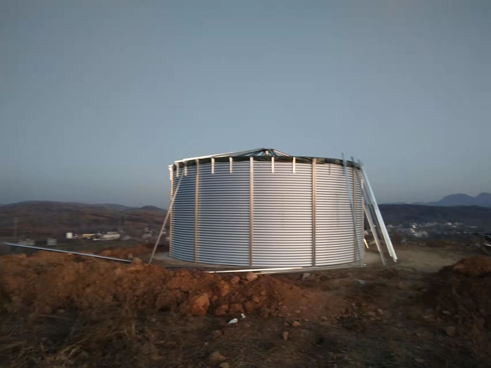 水膜方鋼頂蓋蓄水池安裝完畢(完美呈現)